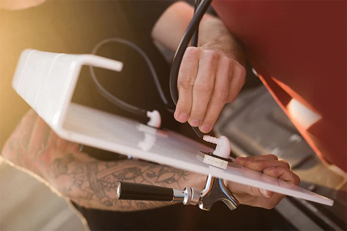Hang the BeerGater plate over the front edge of any standard cooler. Make sure it is stable and properly positioned for easy access to the tap.