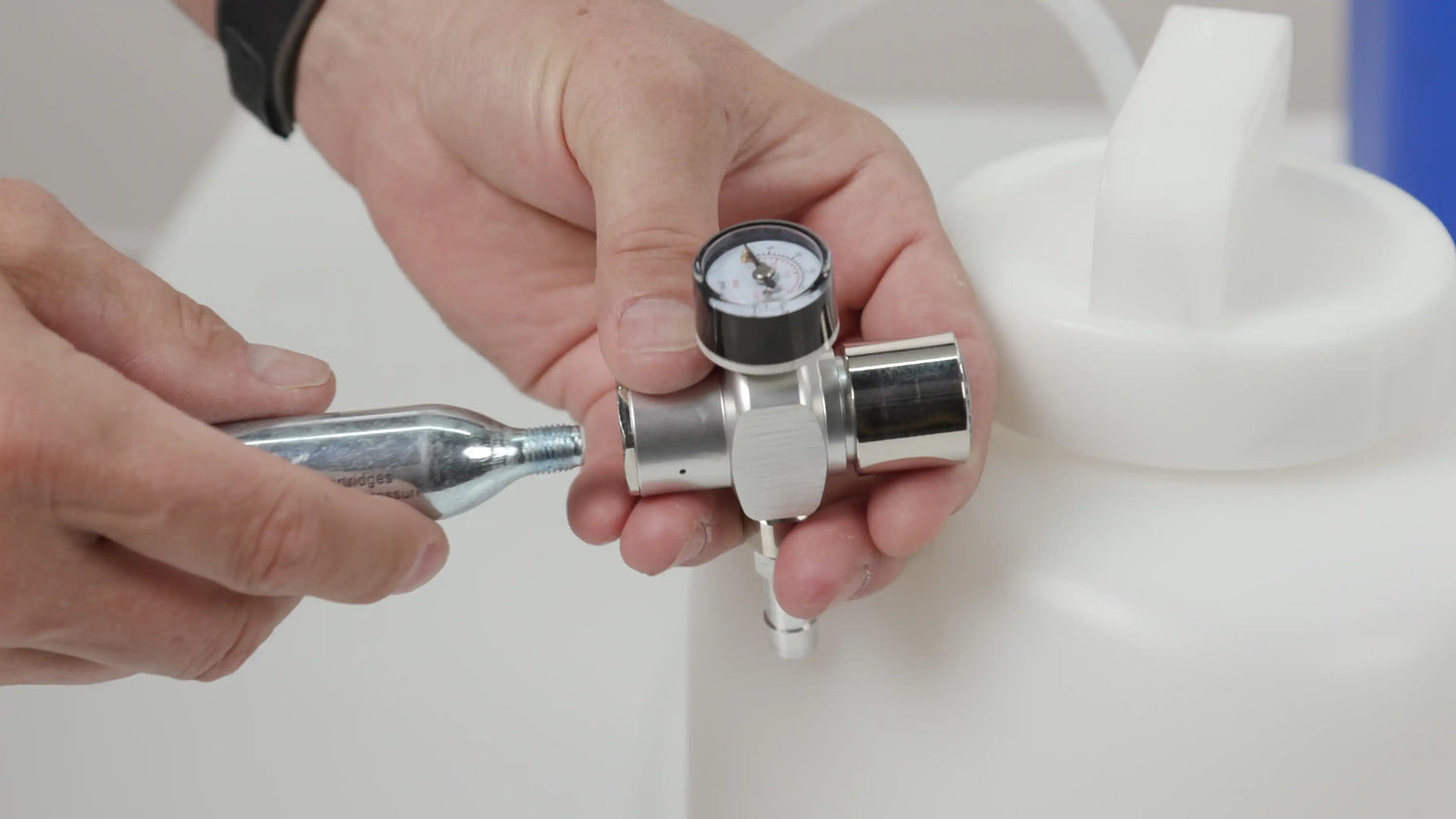 Add CO2 to the system whenever it gets low, keeping about 10 PSI of pressure. Simply open the valve to increase the pressure, and then close the valve once it reaches 10 PSI. DO NOT leave the valve open at all times, or you will run out of CO2 much too quickly and the pressure will become too high, causing beverages to blast out of the tap instead of flowing in cool, smooth pours.